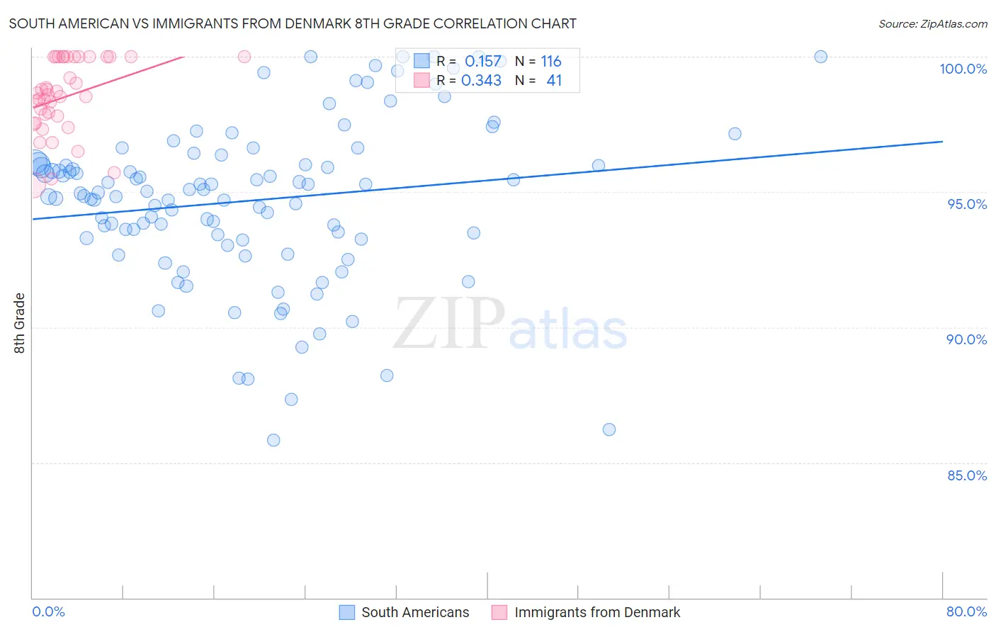 South American vs Immigrants from Denmark 8th Grade Correlation Chart