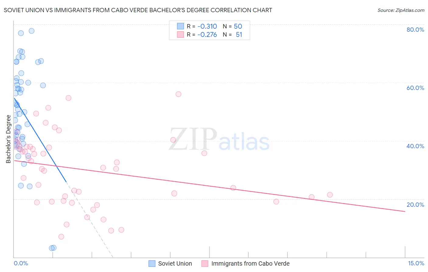 Soviet Union vs Immigrants from Cabo Verde Bachelor's Degree Correlation Chart