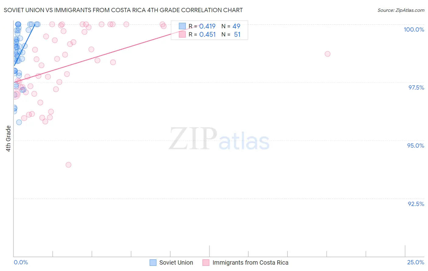 Soviet Union vs Immigrants from Costa Rica 4th Grade Correlation Chart