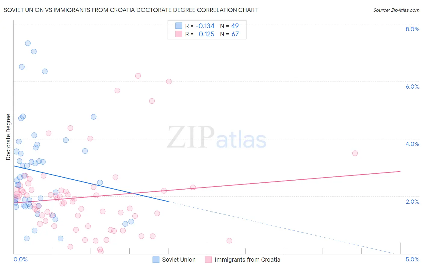 Soviet Union vs Immigrants from Croatia Doctorate Degree Correlation Chart