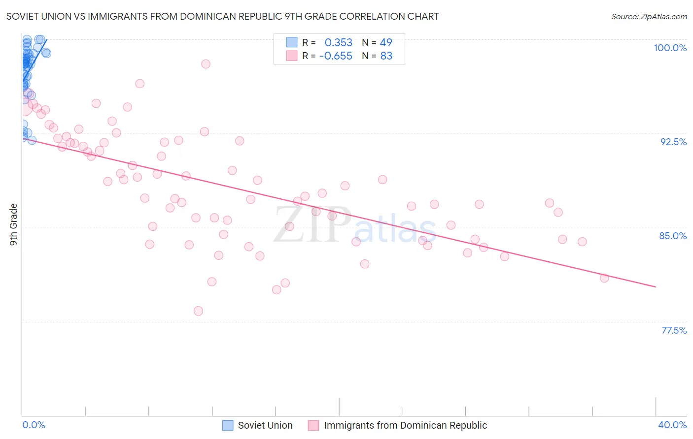 Soviet Union vs Immigrants from Dominican Republic 9th Grade Correlation Chart