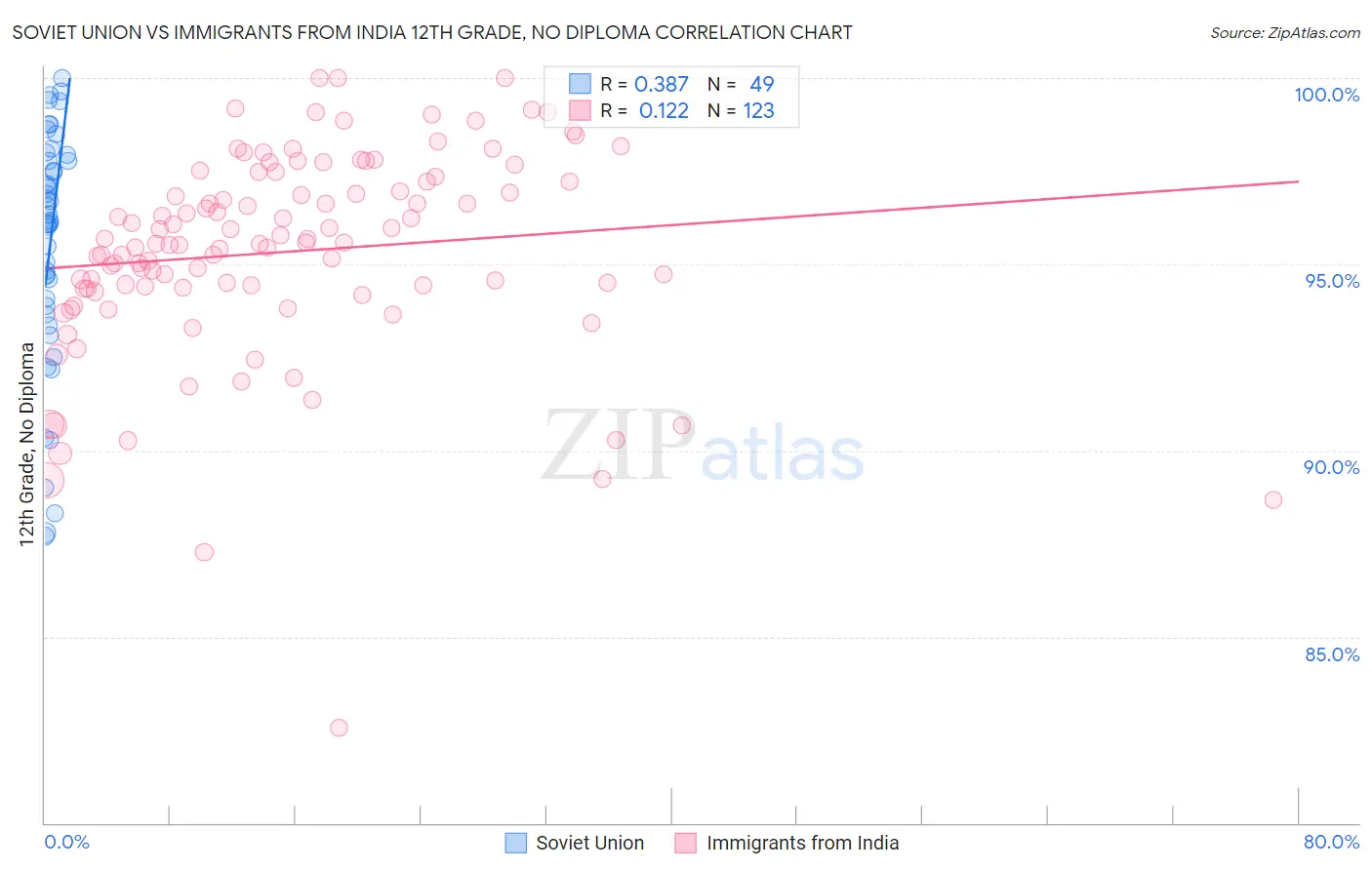 Soviet Union vs Immigrants from India 12th Grade, No Diploma Correlation Chart