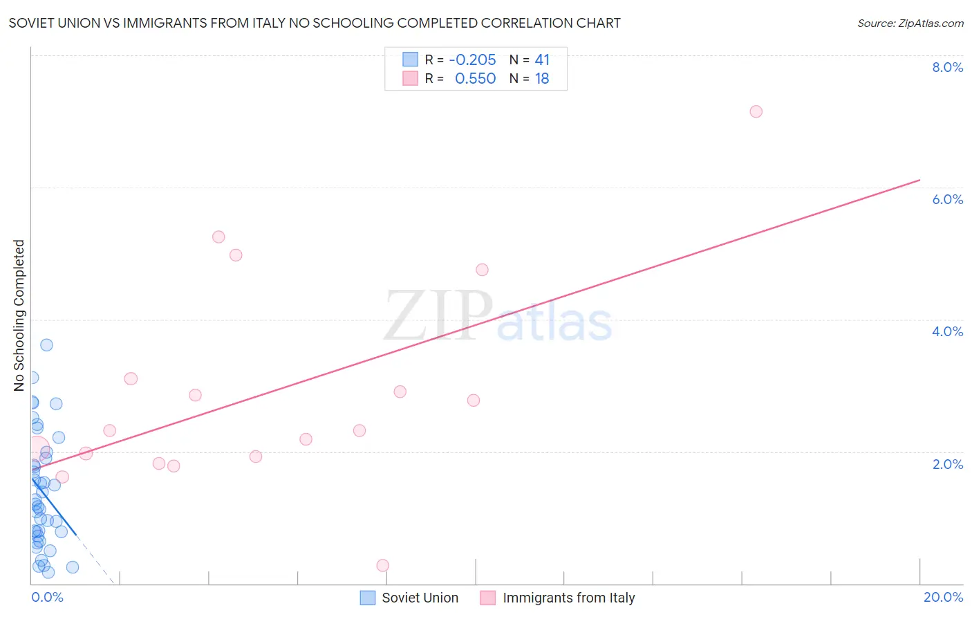 Soviet Union vs Immigrants from Italy No Schooling Completed Correlation Chart