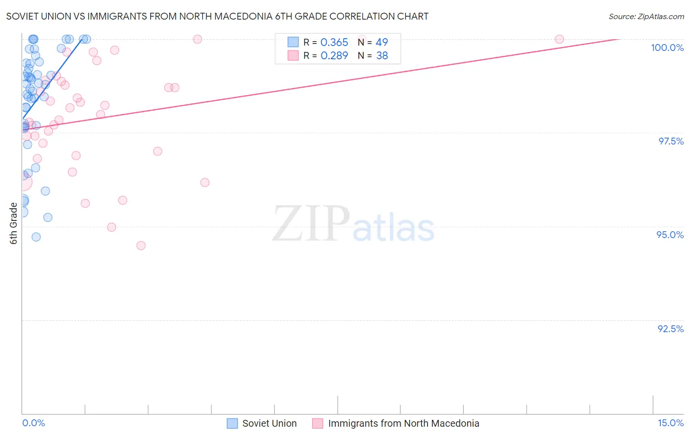 Soviet Union vs Immigrants from North Macedonia 6th Grade Correlation Chart