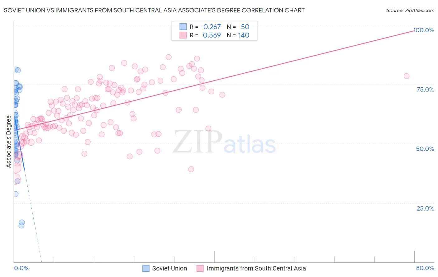Soviet Union vs Immigrants from South Central Asia Associate's Degree Correlation Chart