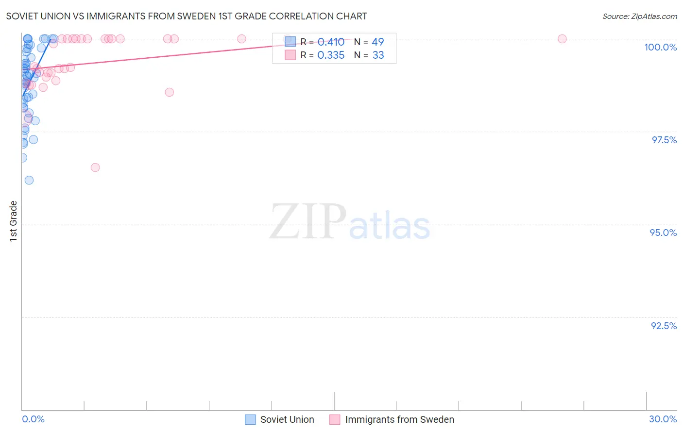 Soviet Union vs Immigrants from Sweden 1st Grade Correlation Chart
