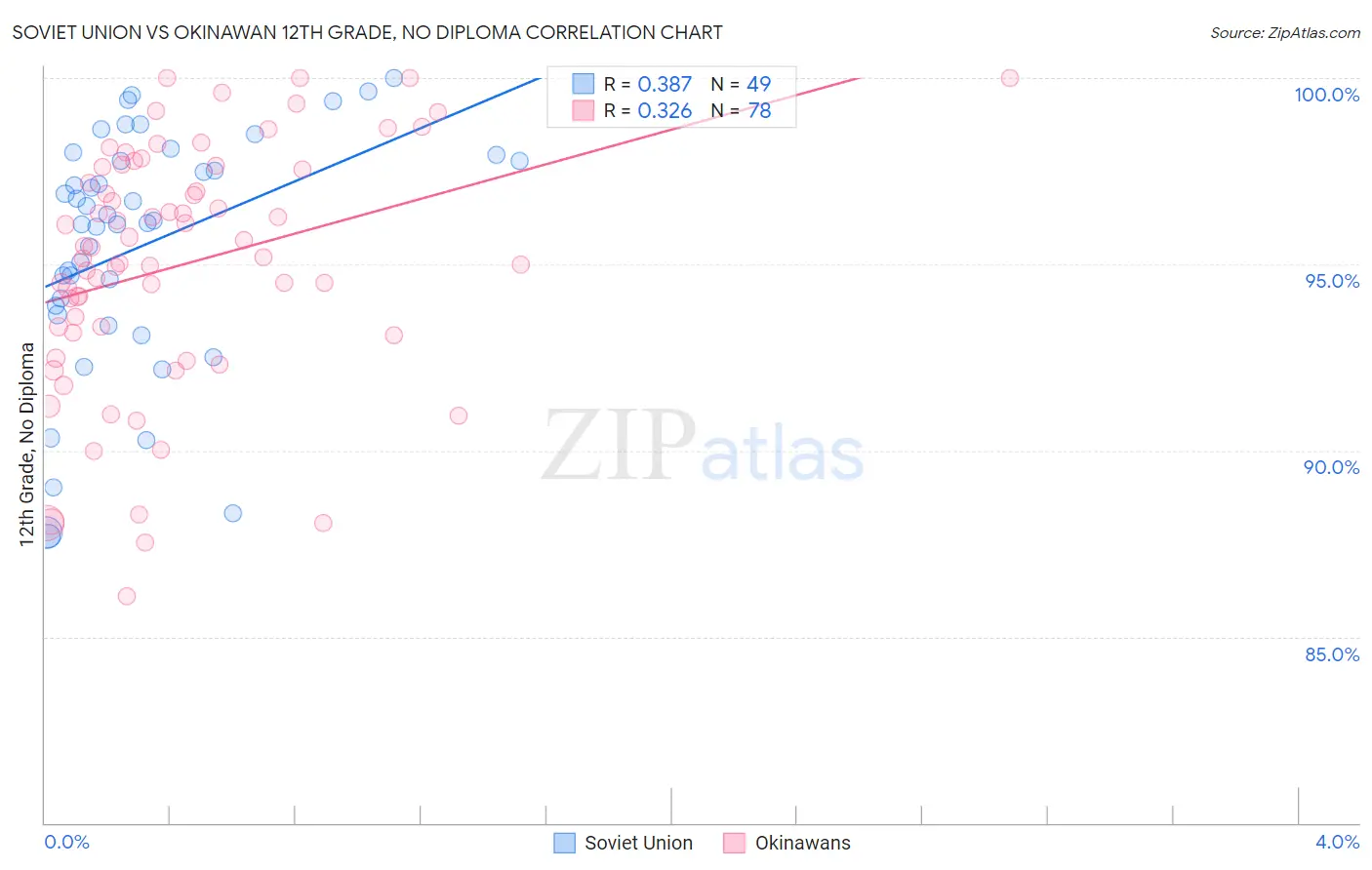 Soviet Union vs Okinawan 12th Grade, No Diploma Correlation Chart