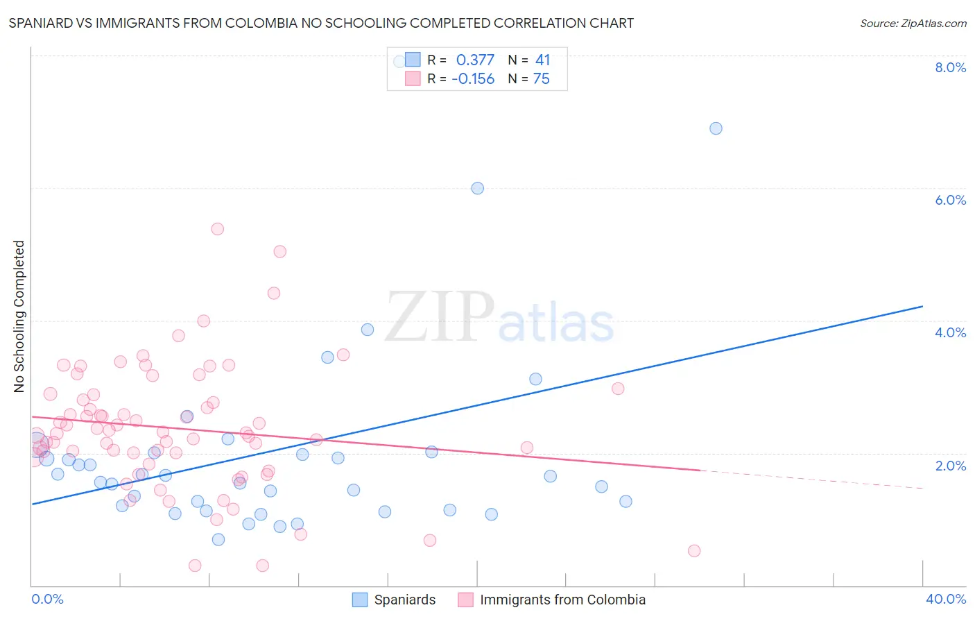 Spaniard vs Immigrants from Colombia No Schooling Completed