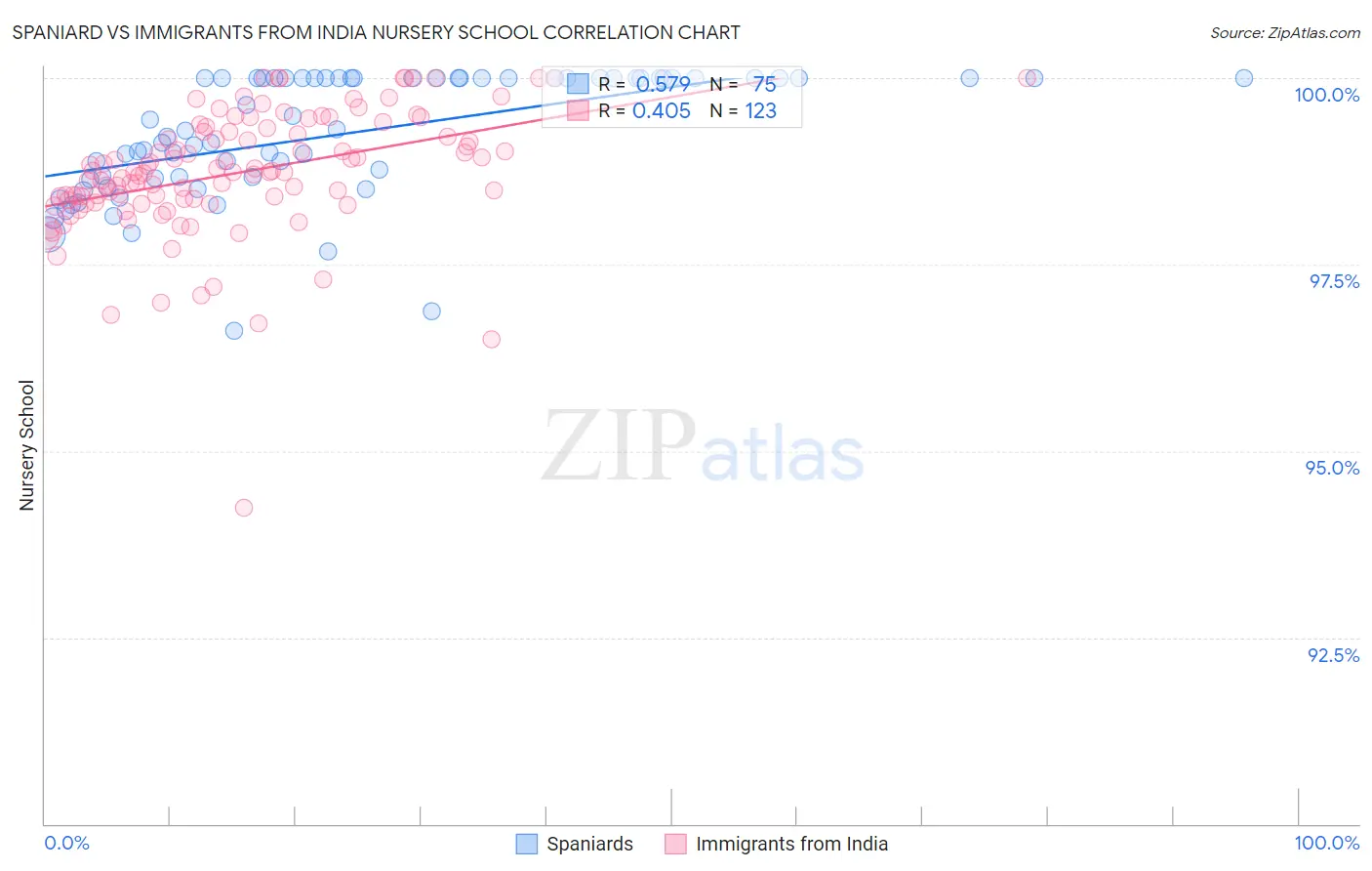 Spaniard vs Immigrants from India Nursery School Correlation Chart