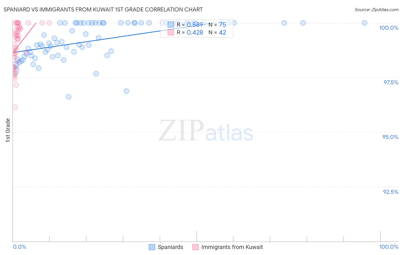 Spaniard vs Immigrants from Kuwait 1st Grade Correlation Chart