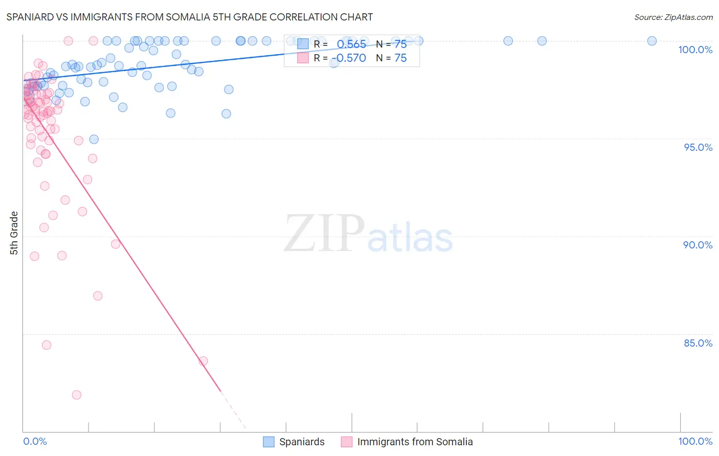 Spaniard vs Immigrants from Somalia 5th Grade Correlation Chart