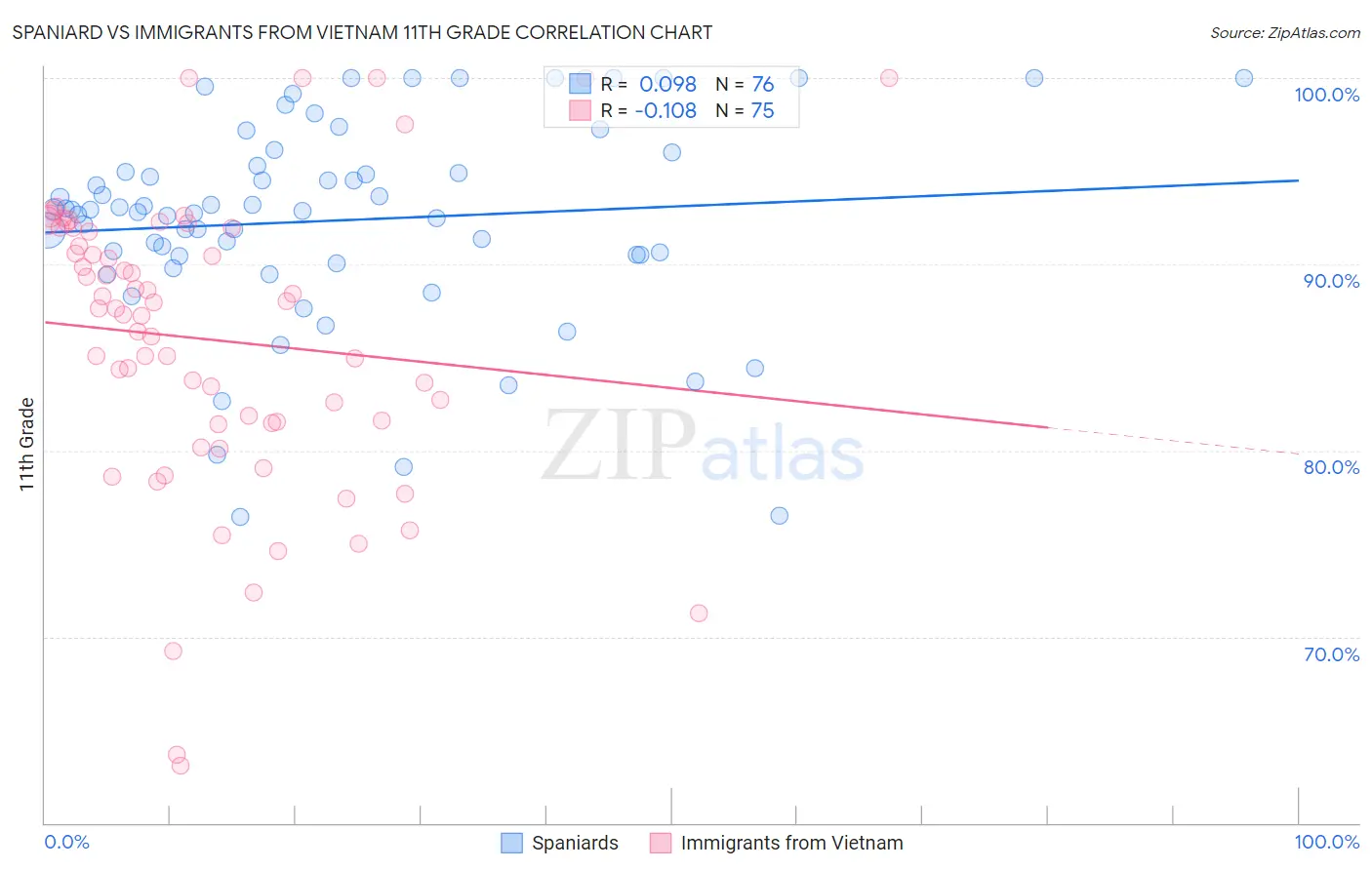 Spaniard vs Immigrants from Vietnam 11th Grade Correlation Chart