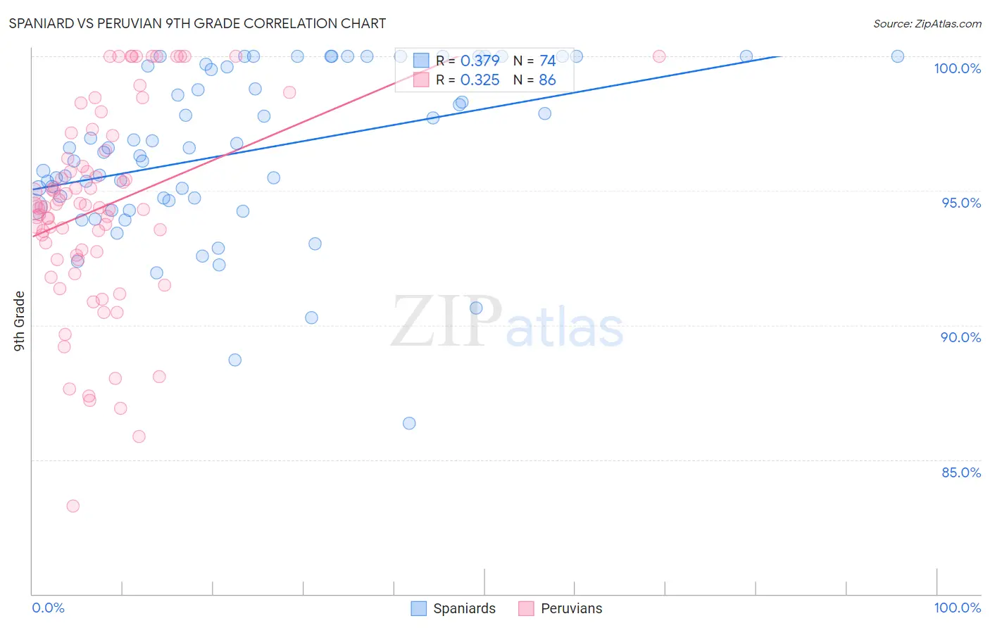 Spaniard vs Peruvian 9th Grade Correlation Chart