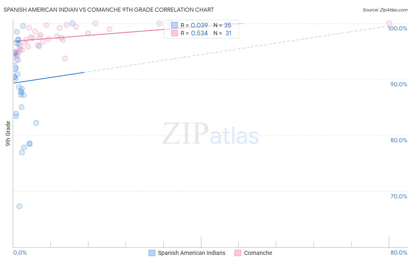 Spanish American Indian vs Comanche 9th Grade Correlation Chart