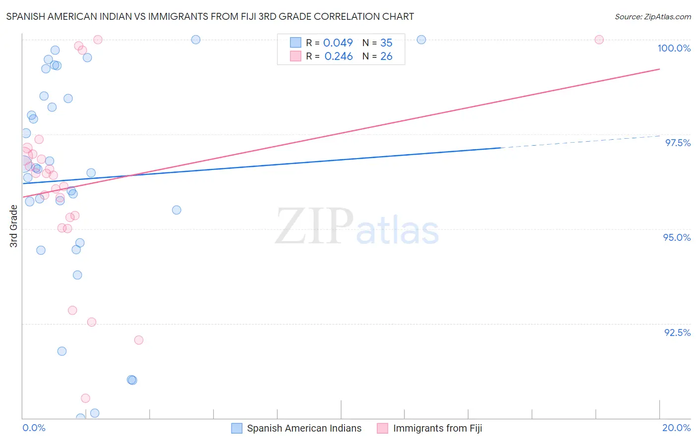 Spanish American Indian vs Immigrants from Fiji 3rd Grade Correlation Chart