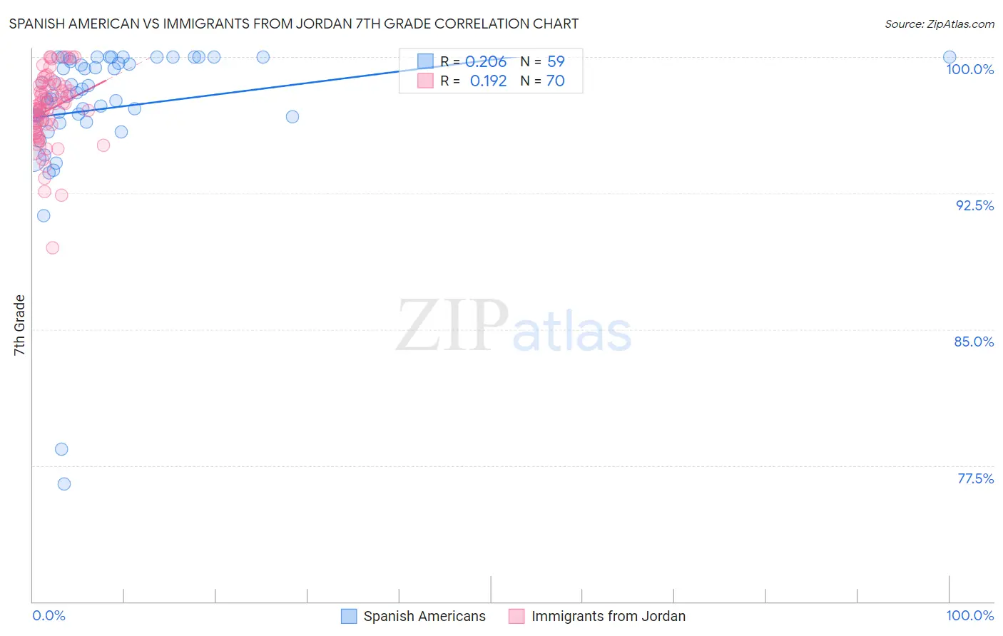 Spanish American vs Immigrants from Jordan 7th Grade Correlation Chart