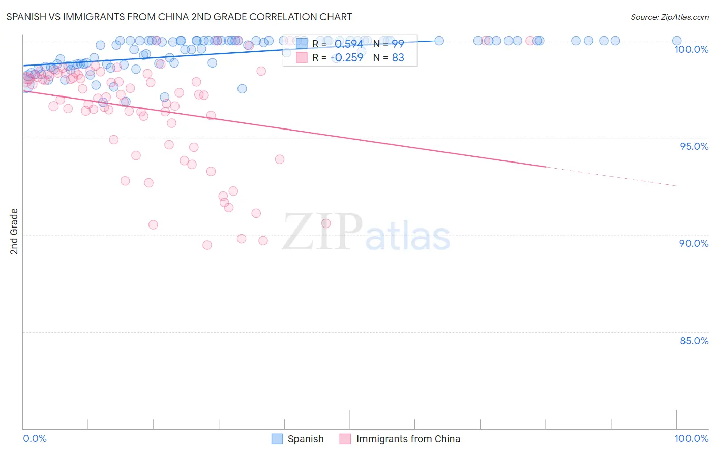 Spanish vs Immigrants from China 2nd Grade Correlation Chart