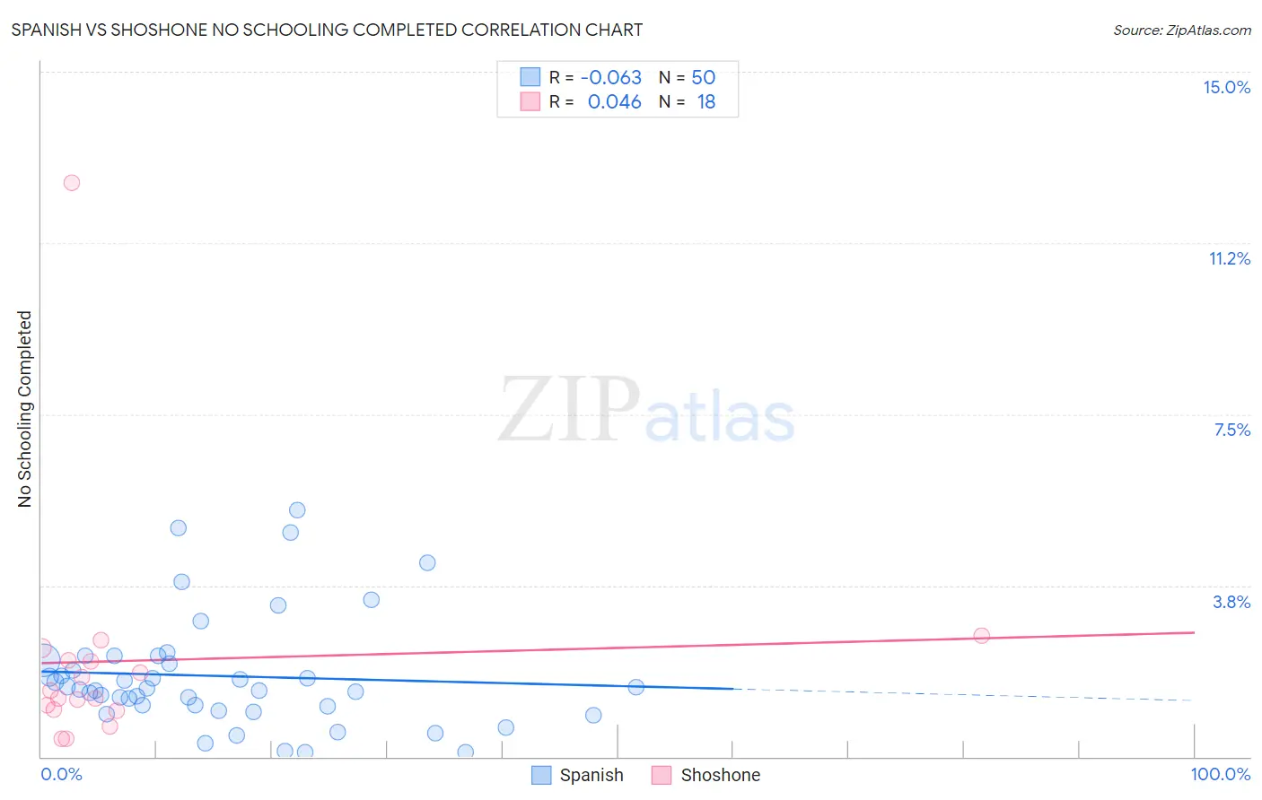 Spanish vs Shoshone No Schooling Completed Correlation Chart