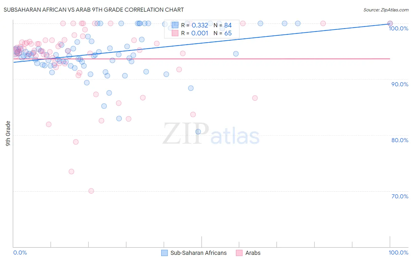 Subsaharan African vs Arab 9th Grade Correlation Chart