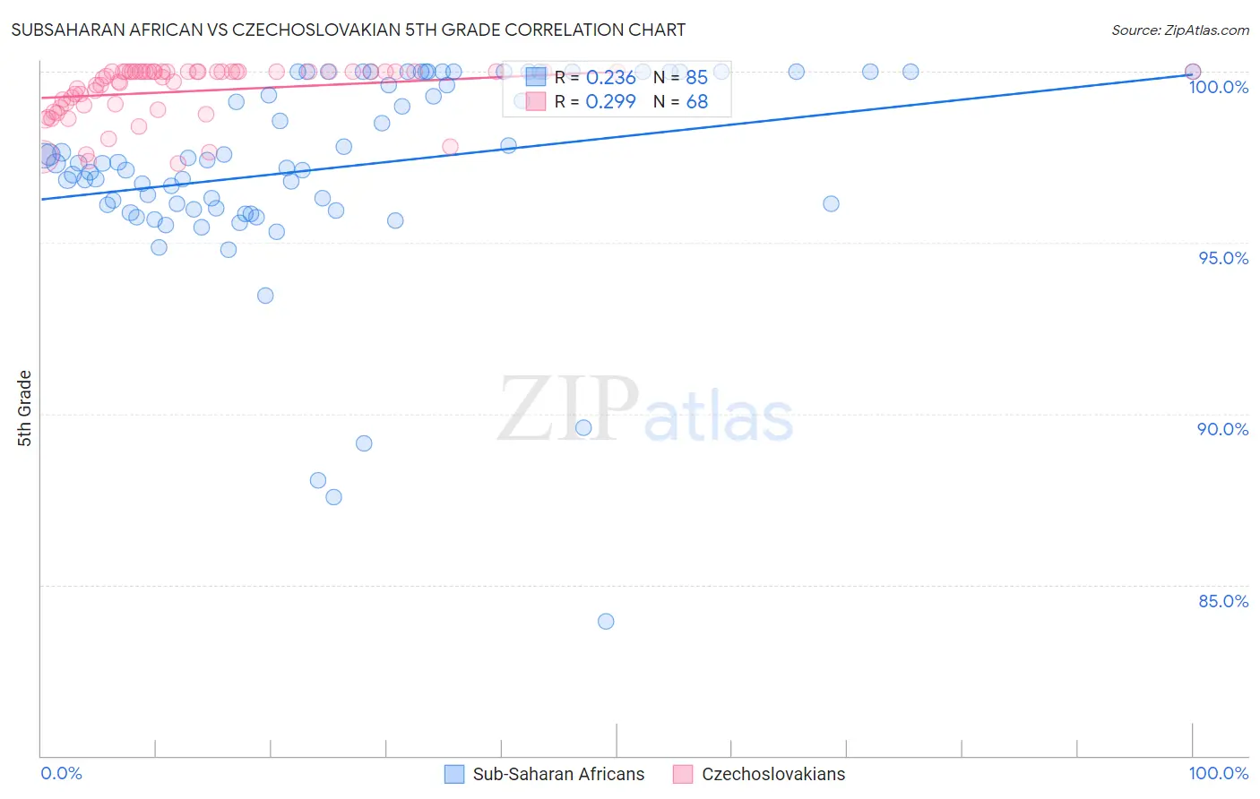 Subsaharan African vs Czechoslovakian 5th Grade Correlation Chart