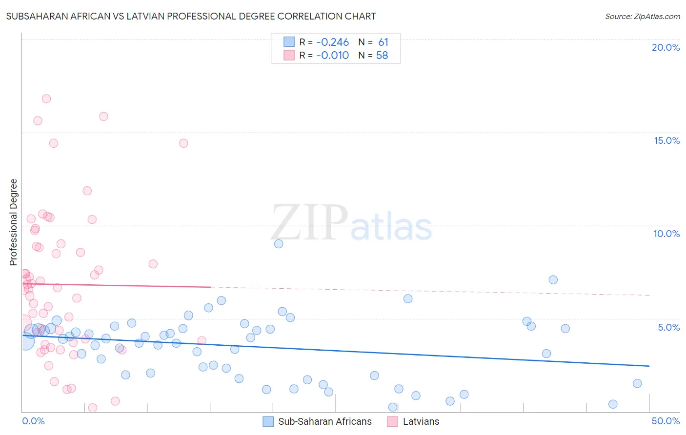 Subsaharan African vs Latvian Professional Degree Correlation Chart