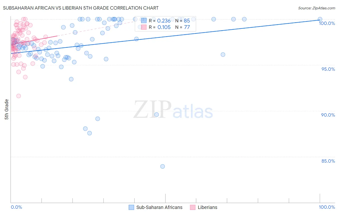 Subsaharan African vs Liberian 5th Grade Correlation Chart