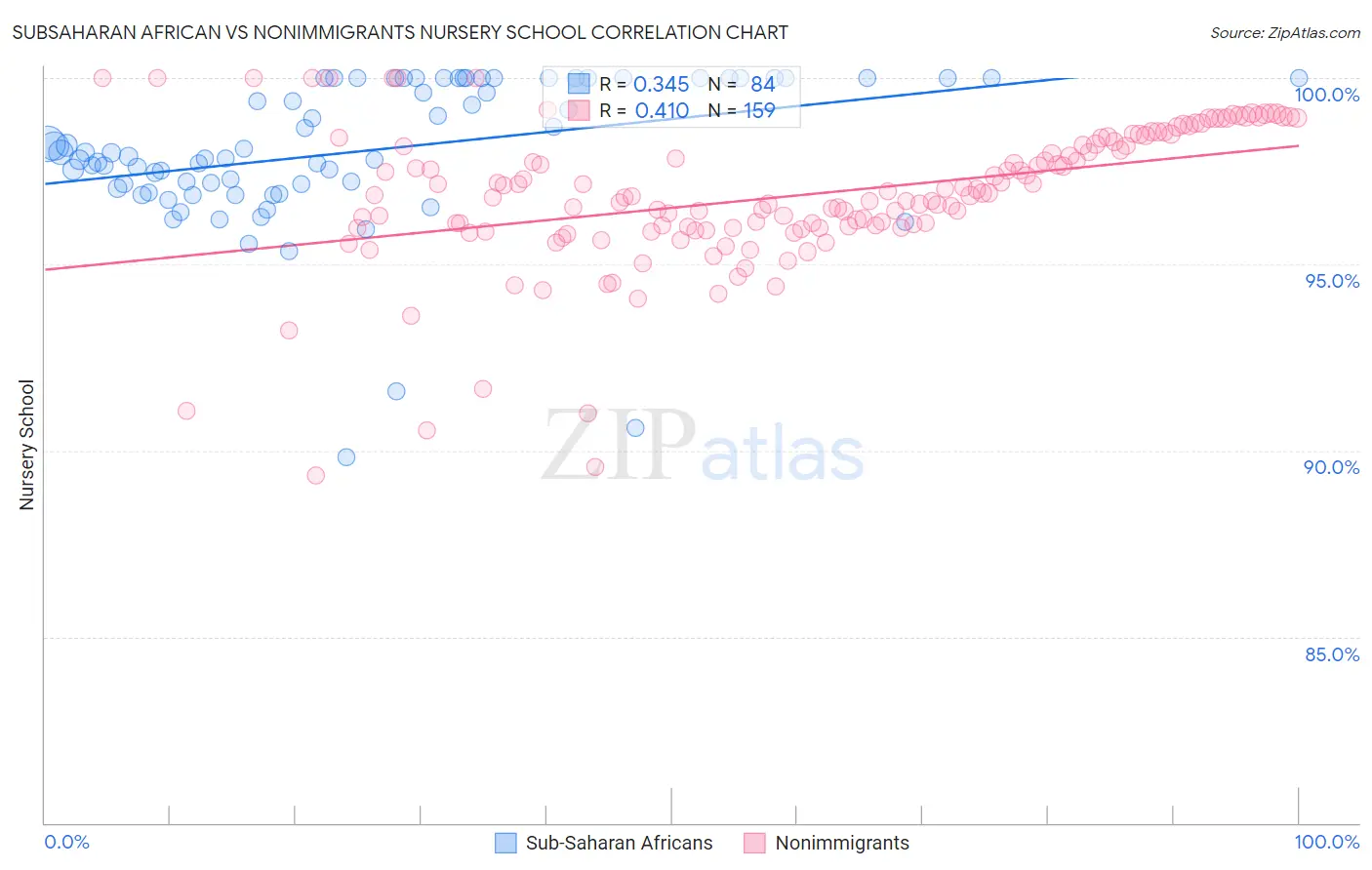 Subsaharan African vs Nonimmigrants Nursery School Correlation Chart