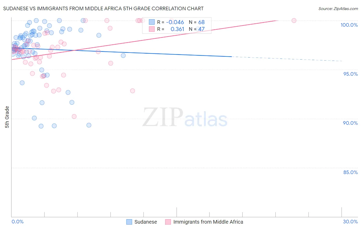 Sudanese vs Immigrants from Middle Africa 5th Grade Correlation Chart
