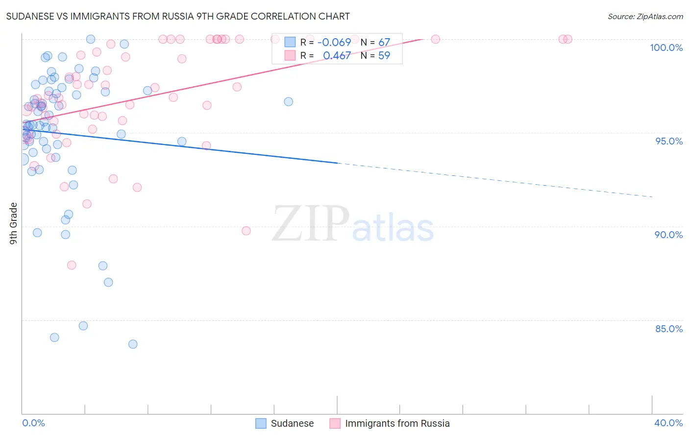Sudanese vs Immigrants from Russia 9th Grade Correlation Chart