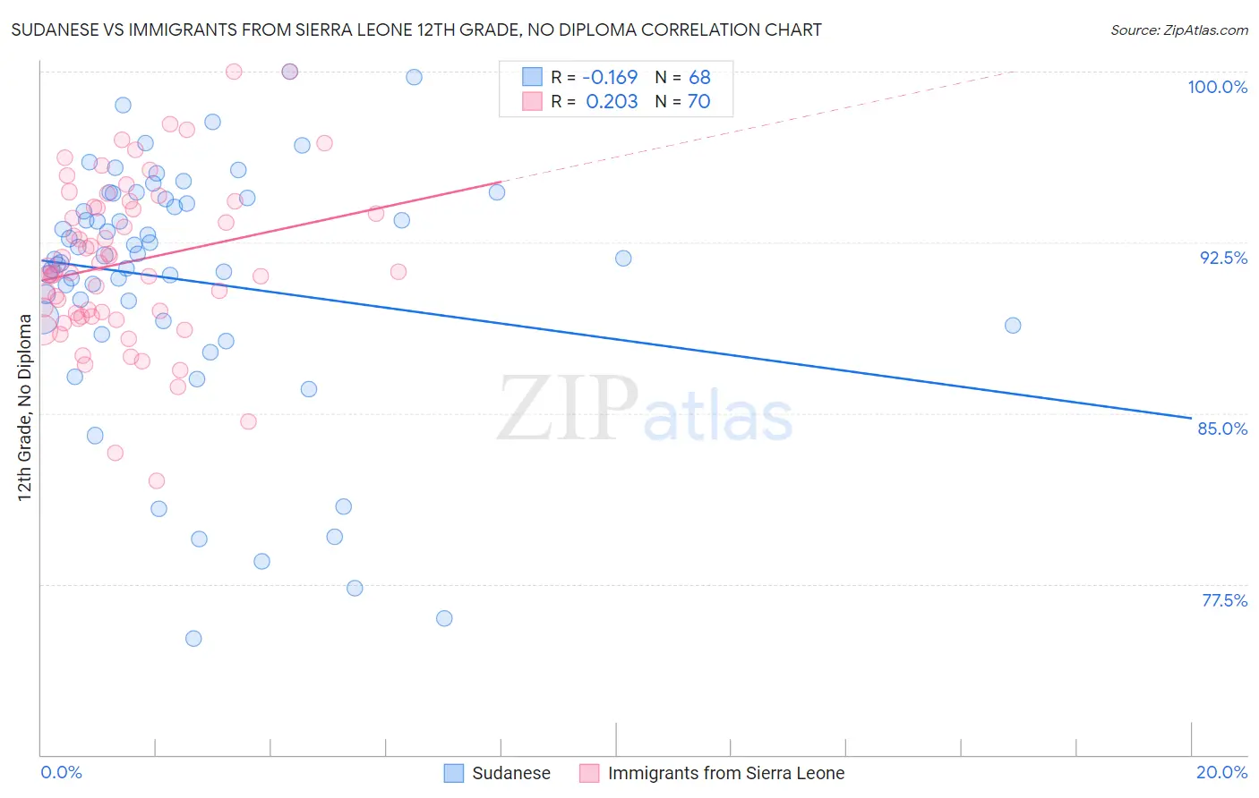 Sudanese vs Immigrants from Sierra Leone 12th Grade, No Diploma Correlation Chart