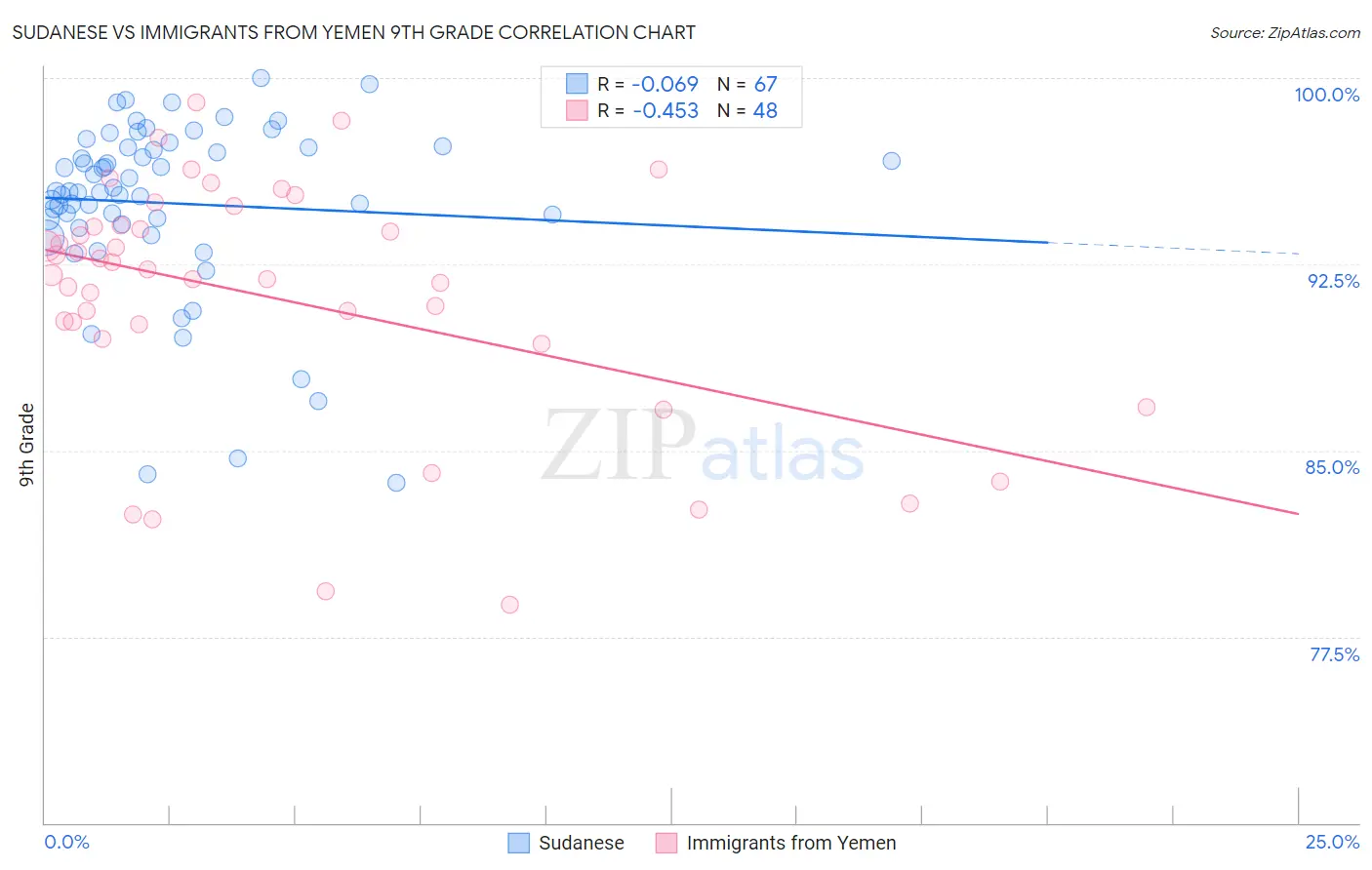 Sudanese vs Immigrants from Yemen 9th Grade Correlation Chart