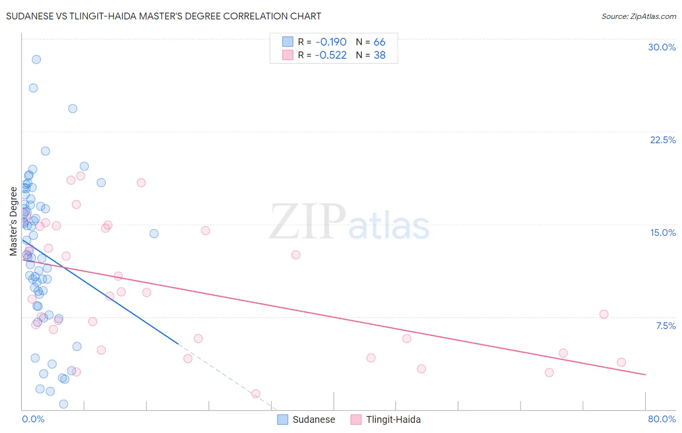 Sudanese vs Tlingit-Haida Master's Degree Correlation Chart