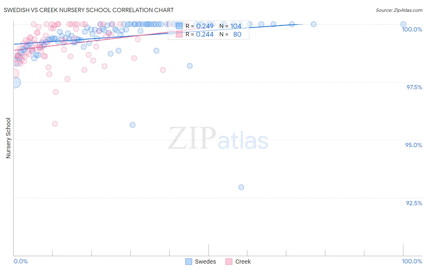 Swedish vs Creek Nursery School Correlation Chart