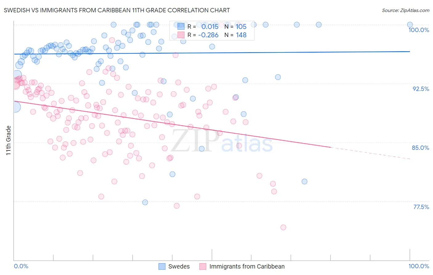 Swedish vs Immigrants from Caribbean 11th Grade Correlation Chart