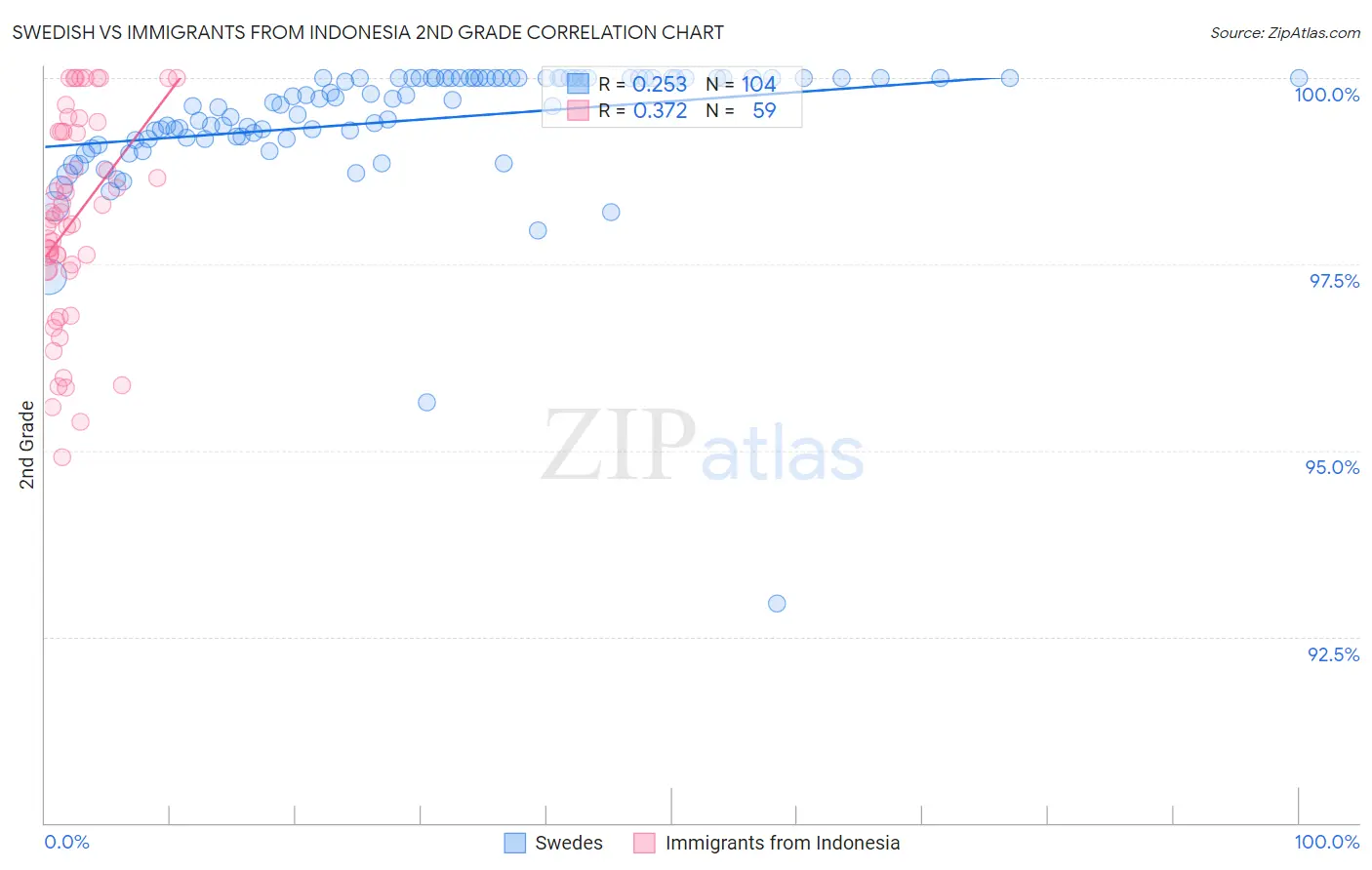 Swedish vs Immigrants from Indonesia 2nd Grade Correlation Chart