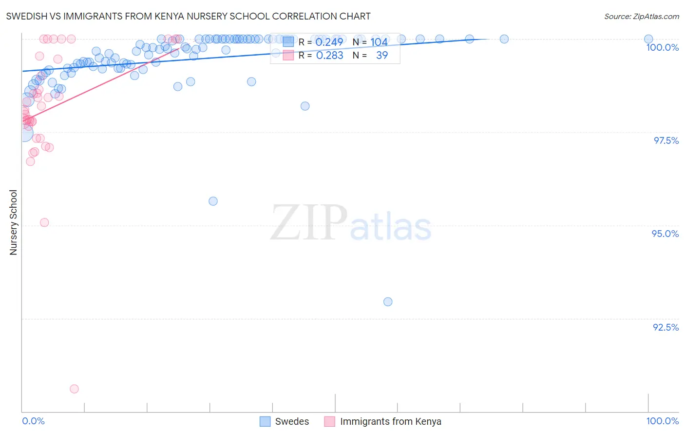Swedish vs Immigrants from Kenya Nursery School Correlation Chart