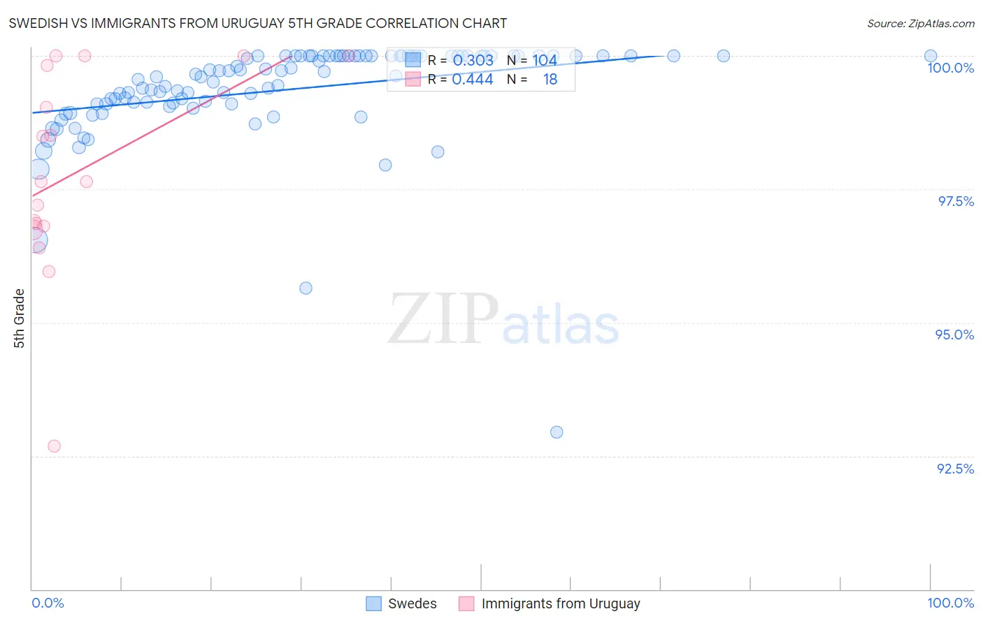 Swedish vs Immigrants from Uruguay 5th Grade Correlation Chart