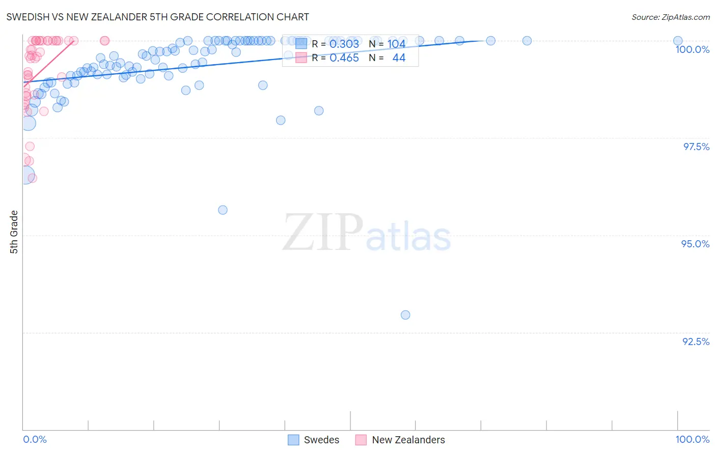 In terms of 5th grade, the demographic groups most similar to Swedes are English (98.3%, a difference of 0.0%), Alaskan Athabascan (98.3%, a difference of 0.0%), Carpatho Rusyn (98.3%, a difference of 0.010%), Tlingit-Haida (98.3%, a difference of 0.030%), and Slovene (98.3%, a difference of 0.040%).