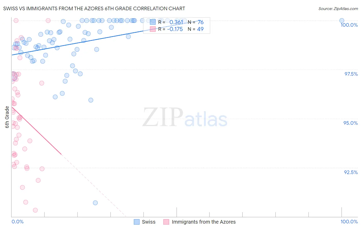 Swiss vs Immigrants from the Azores 6th Grade Correlation Chart
