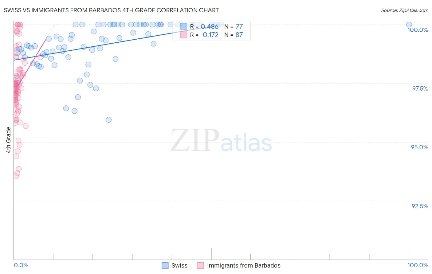 Swiss vs Immigrants from Barbados 4th Grade Correlation Chart