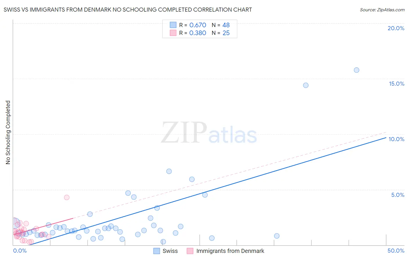 Swiss vs Immigrants from Denmark No Schooling Completed Correlation Chart