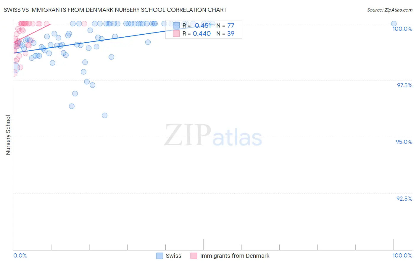 Swiss vs Immigrants from Denmark Nursery School Correlation Chart