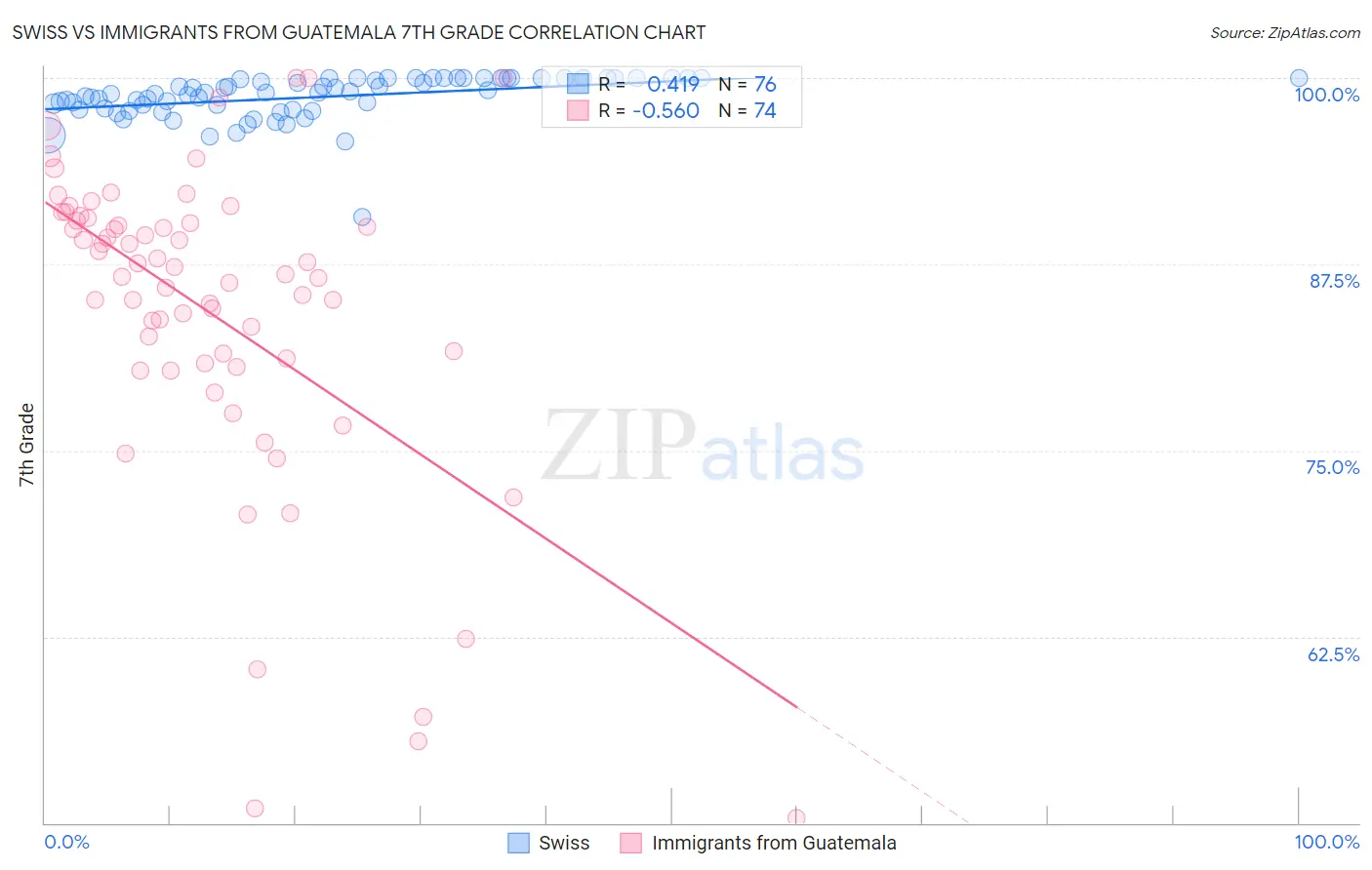 Swiss vs Immigrants from Guatemala 7th Grade Correlation Chart