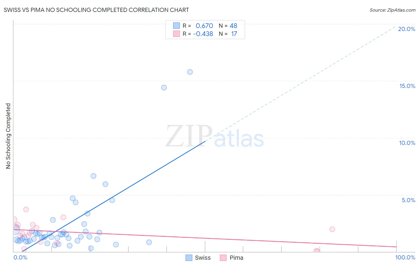 Swiss vs Pima No Schooling Completed Correlation Chart