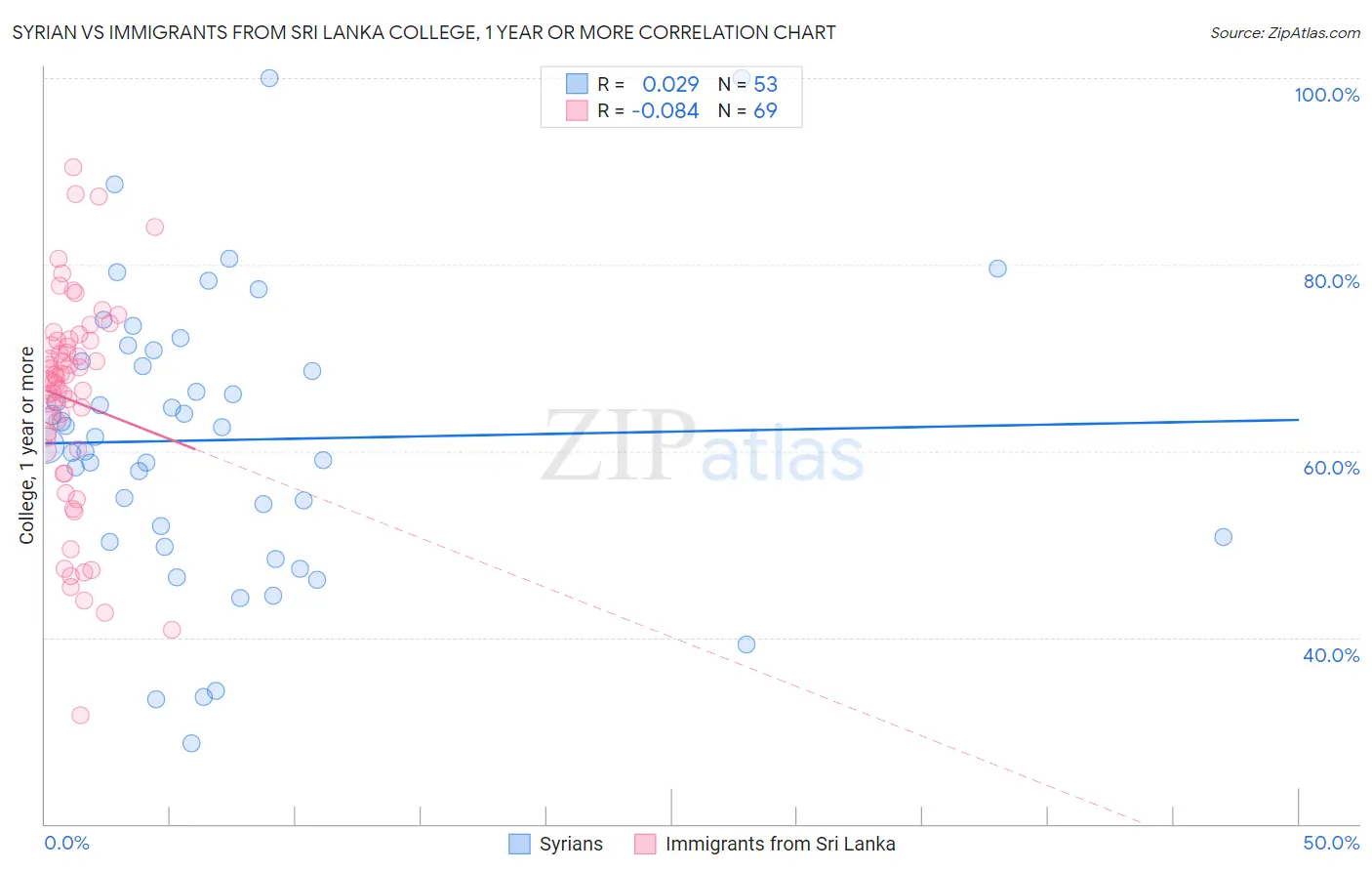 Syrian vs Immigrants from Sri Lanka College, 1 year or more Correlation Chart