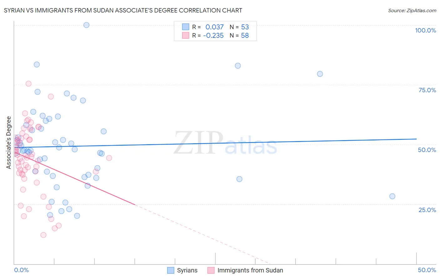 Syrian vs Immigrants from Sudan Associate's Degree Correlation Chart
