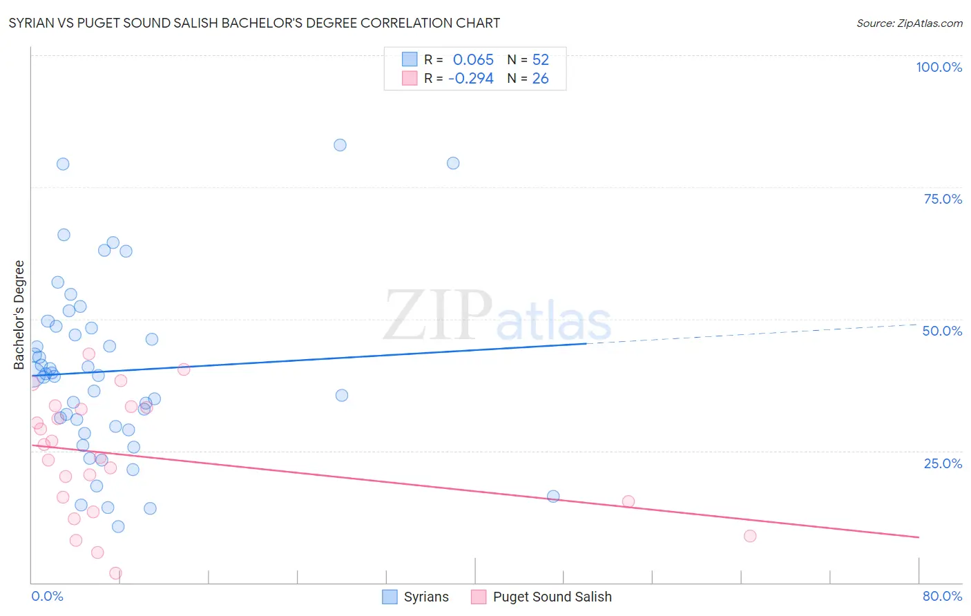 Syrian vs Puget Sound Salish Bachelor's Degree Correlation Chart
