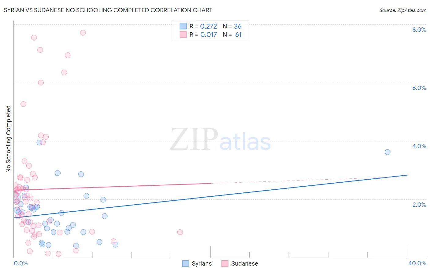Syrian vs Sudanese No Schooling Completed Correlation Chart