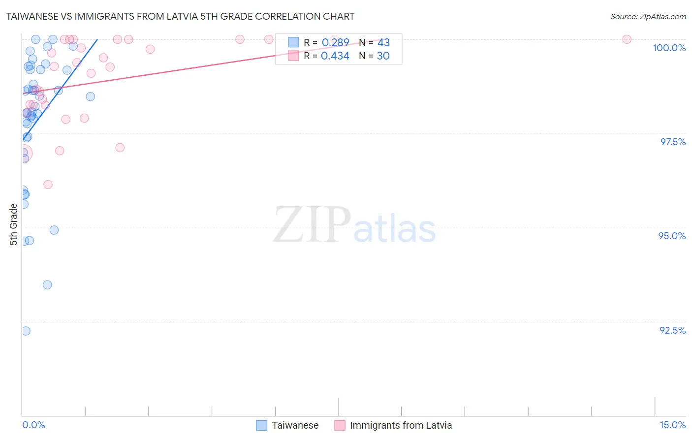 Taiwanese vs Immigrants from Latvia 5th Grade Correlation Chart