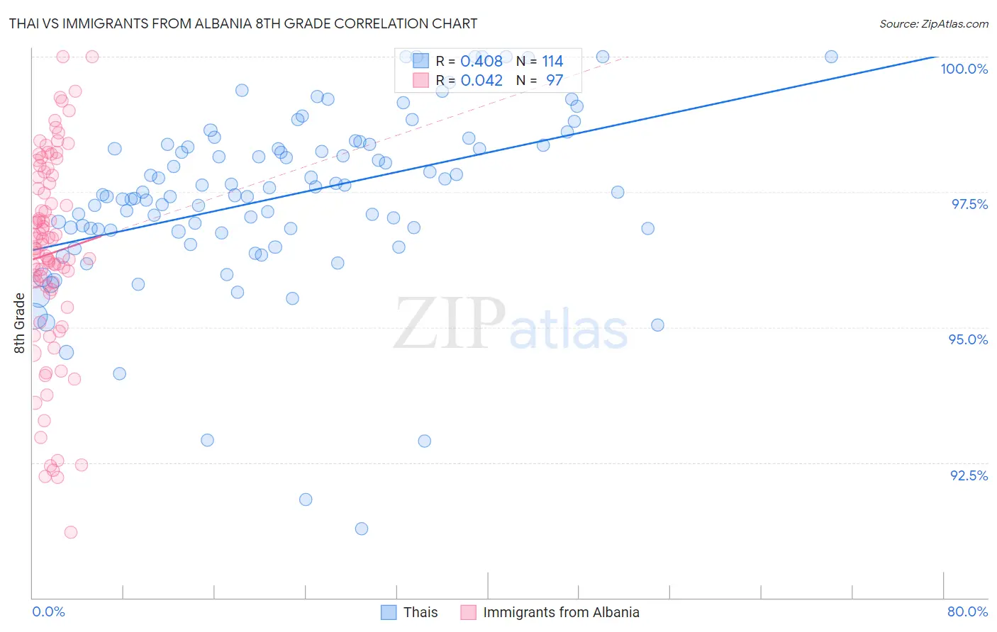 Thai vs Immigrants from Albania 8th Grade Correlation Chart